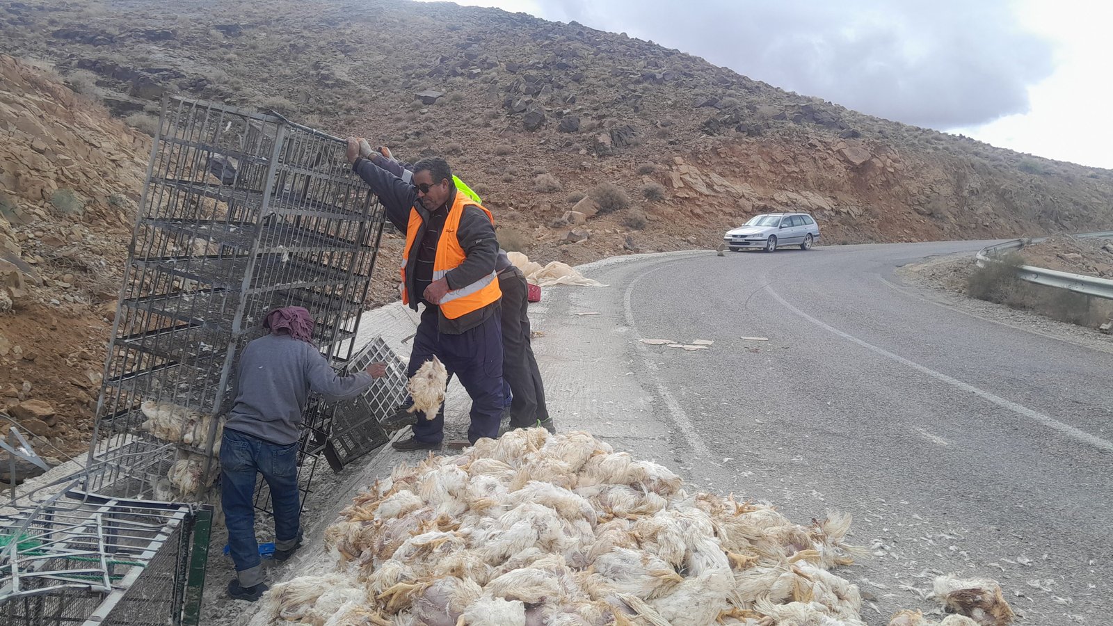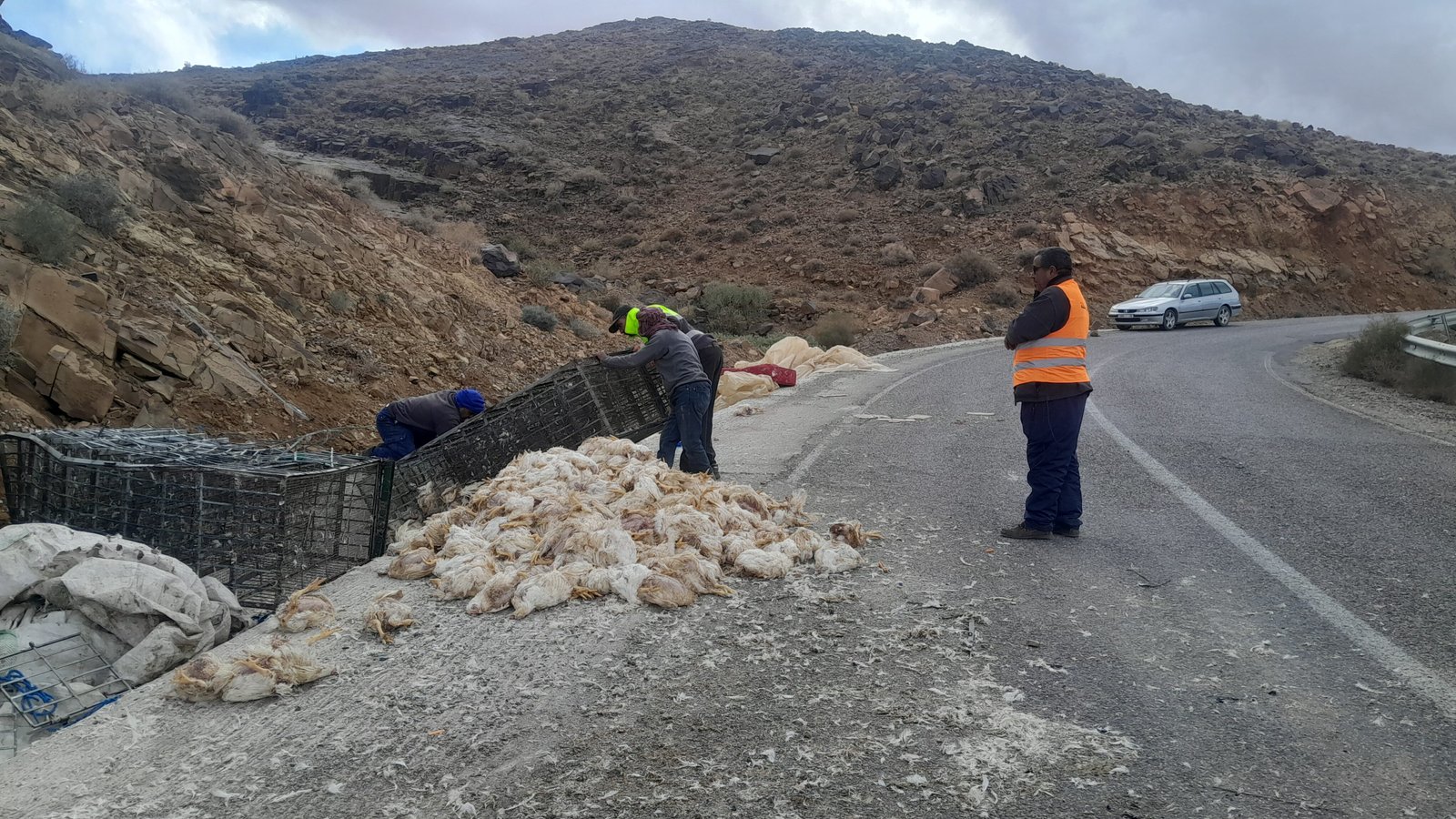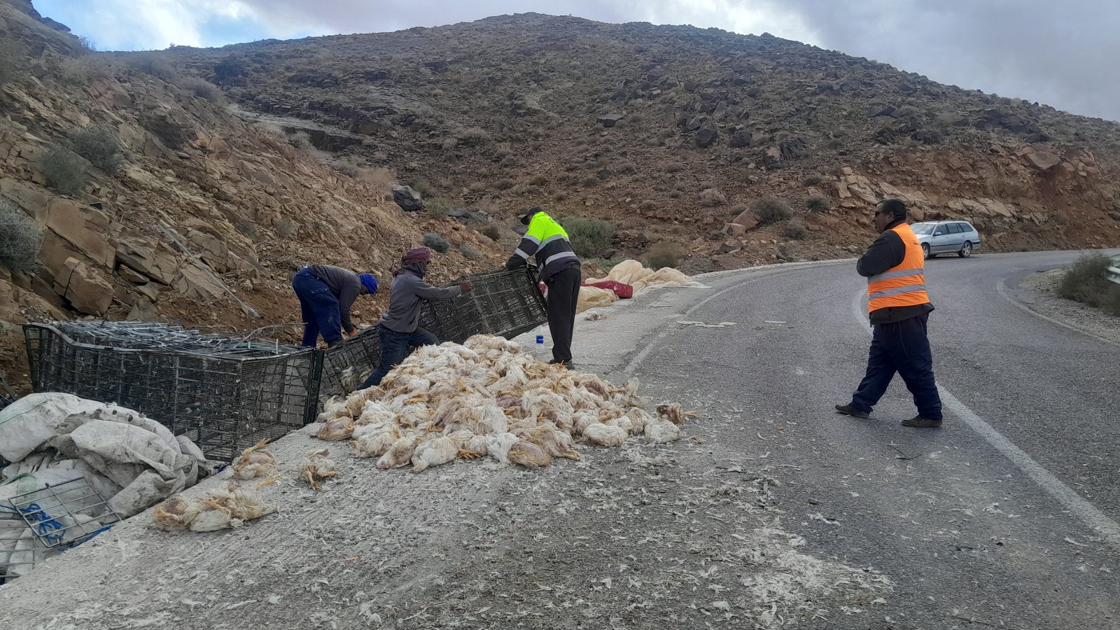 شهدت الطريق الإقليمية رقم 1521، المعروفة سابقًا بالطريق الجهوية رقم 113، الرابطة بين جماعتي أيت الفرسي وألنيف بإقليم تنغير، صباح اليوم الخميس، حادثة سير خطيرة تمثلت في انقلاب شاحنة محمّلة بالدواجن، وذلك على مستوى مقطع تيزي نبوجو، الذي يصفه مستعملو الطريق بـ“منعرج الموت”، نظرًا لخطورة منعرجاته وضيق مساره.